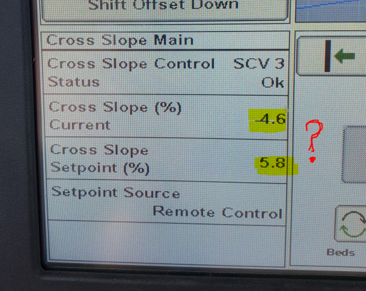 When T3RRA is commanding a cross slope tilt to one side the scraper blade is doing the opposite. iGrade is showing a current cross slope % as positive when the implement is rolled to the left, and negative when tolled to the right. Reversing hydraulic hoses in the remotes does not help the problem.