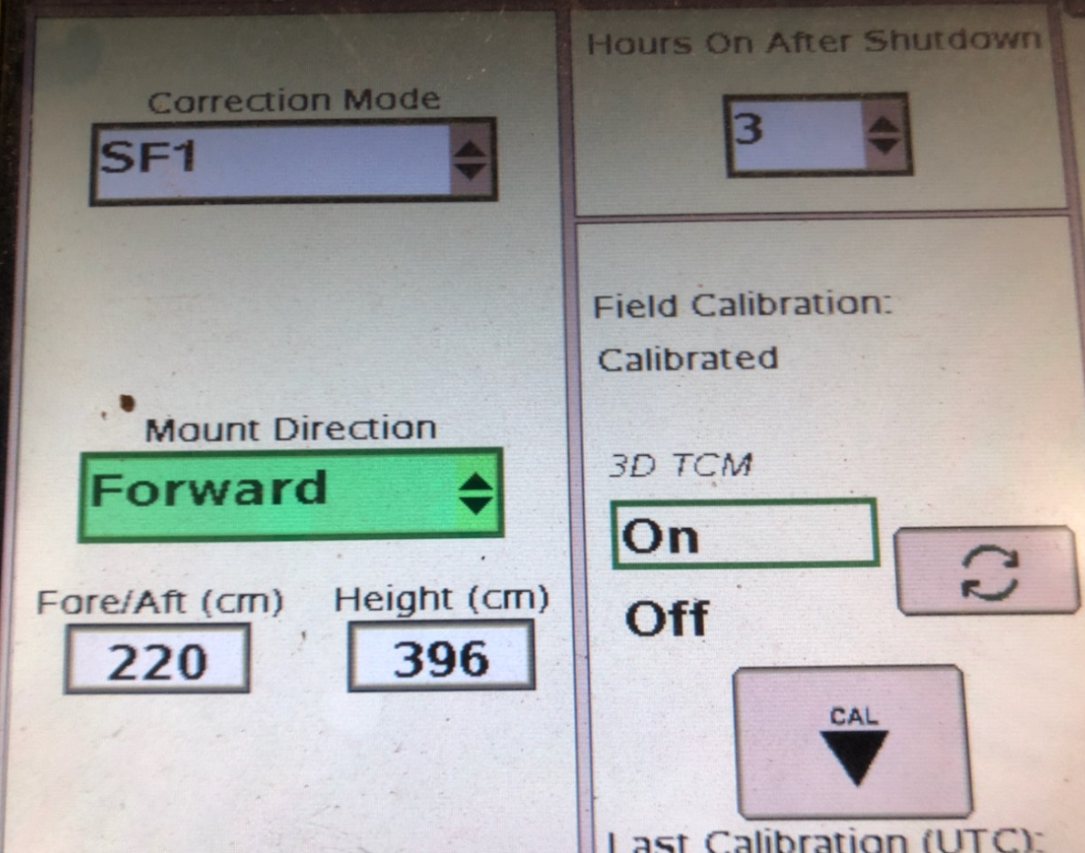 The implement GPS mount direction has been changed to ‘Backward’ in the John Deere display. This causes receiver TCM readings to be the opposite of what they should be.