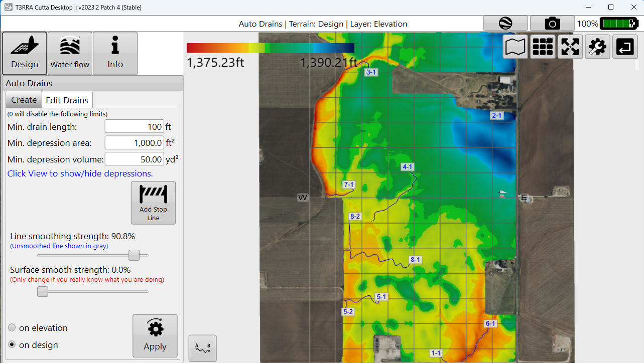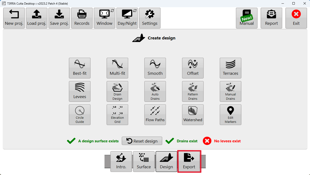 Design your drains, levees, or terraces or load the project with the desired linework.