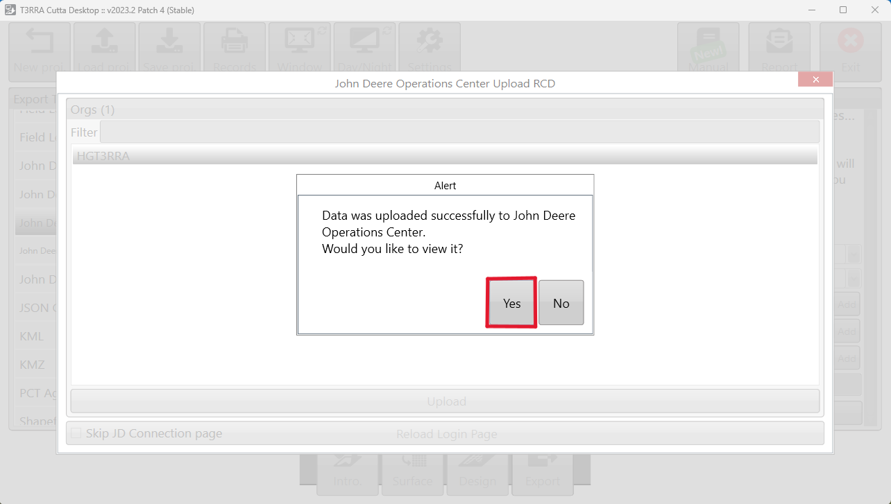 Once complete, you will be asked if you would like to view the exported file in Ops Center. If you would like to confirm the transfer, select Yes.