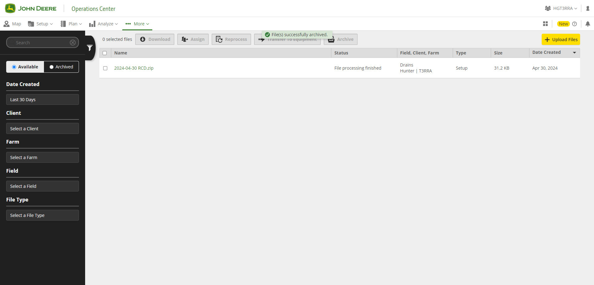 You will be directed to the Files page of your connected Ops Center account where the file containing the linework will be present.