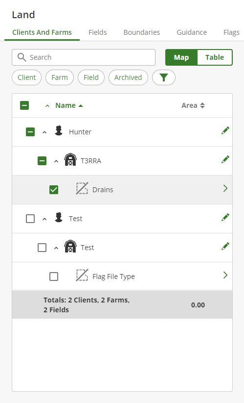 To view the guidance lines, go to the Setup tab and select Land. From Land, you will be able to select the field you entered in the export step in T3CD. Choose the field.