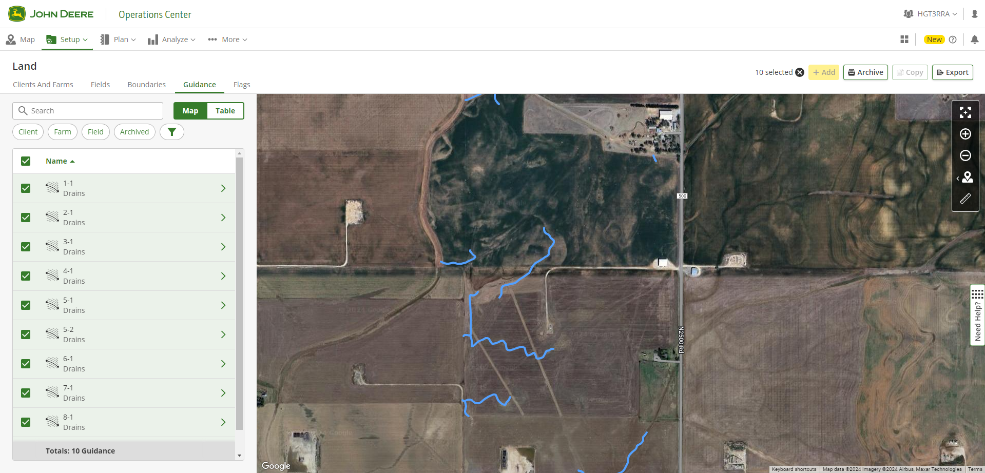 If desired, you can export guidance lines straight to John Deere Operations Center where they can be organized and transferred remotely to connected machines.